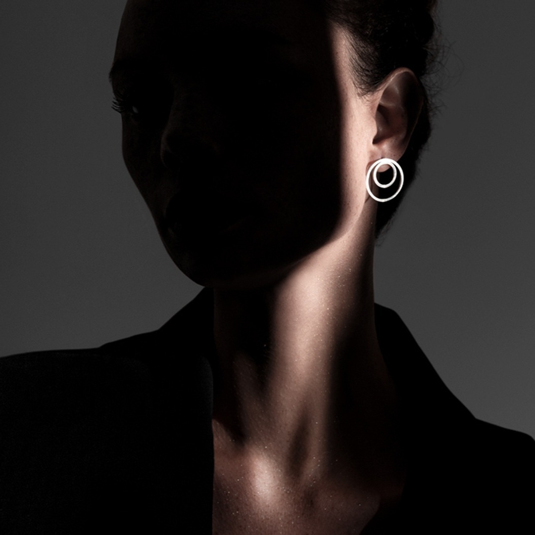 La lumière de cette collection de bijoux fait main se reflète de façon à révéler leurs forme gracieuse et généreuse dans un design très épuré et élégant.