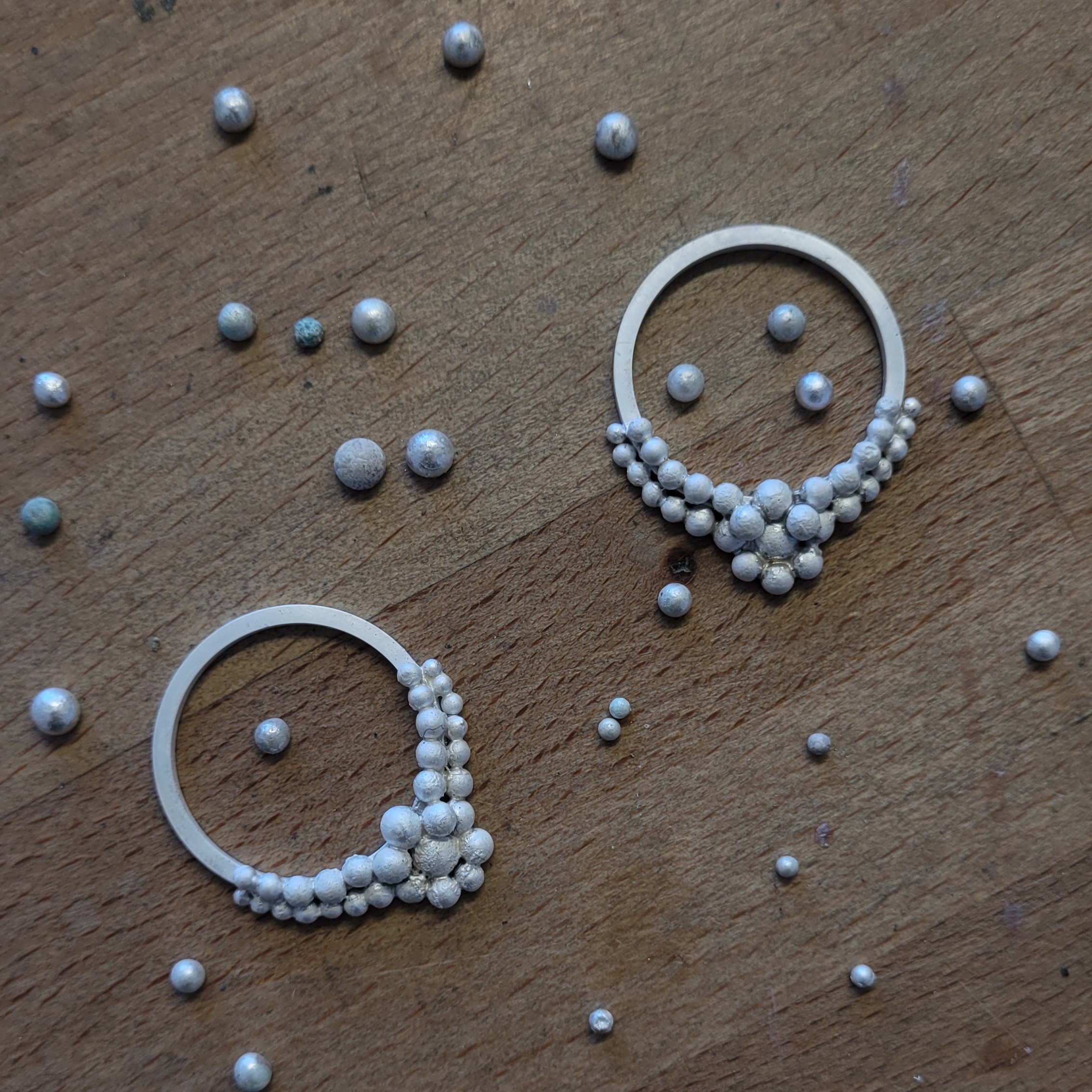 Boucles d'oreilles en granulation revisité, argent 925, grandes puces d'oreilles artisanales suisse