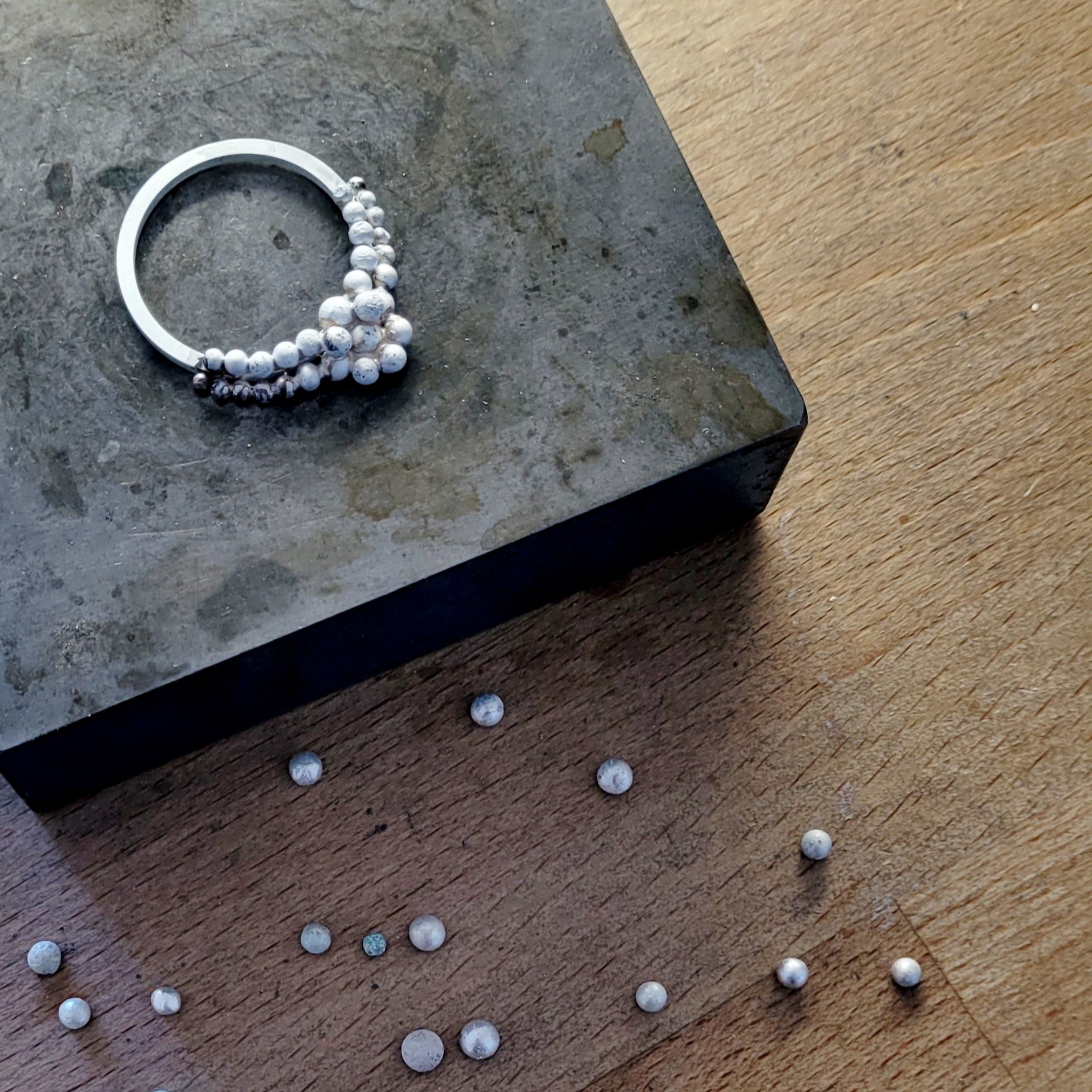 Les petites perles d'argent amènent douceur et harmonie à ces bijoux artisanaux imaginés pour amener de la rondeur et de la générosité à votre tenue.